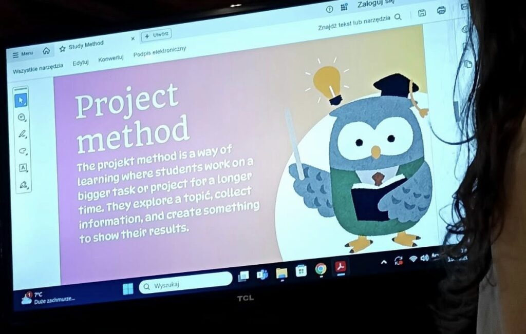 Następnie pracowaliśmy w grupach nad naszymi projektami. Doskonaliliśmy znajomość języka angielskiego poprzez tworzenie mini-lekcji dwujęzycznej w wybranym przez nas przedmiocie. Umożliwiło nam to poznanie podstawowych technik nauczania CLIL i wpłynęło na rozwijanie umiejętności korzystania z materiałów dwujęzycznych. Było sporo śmiechu i kreatywnej zabawy.