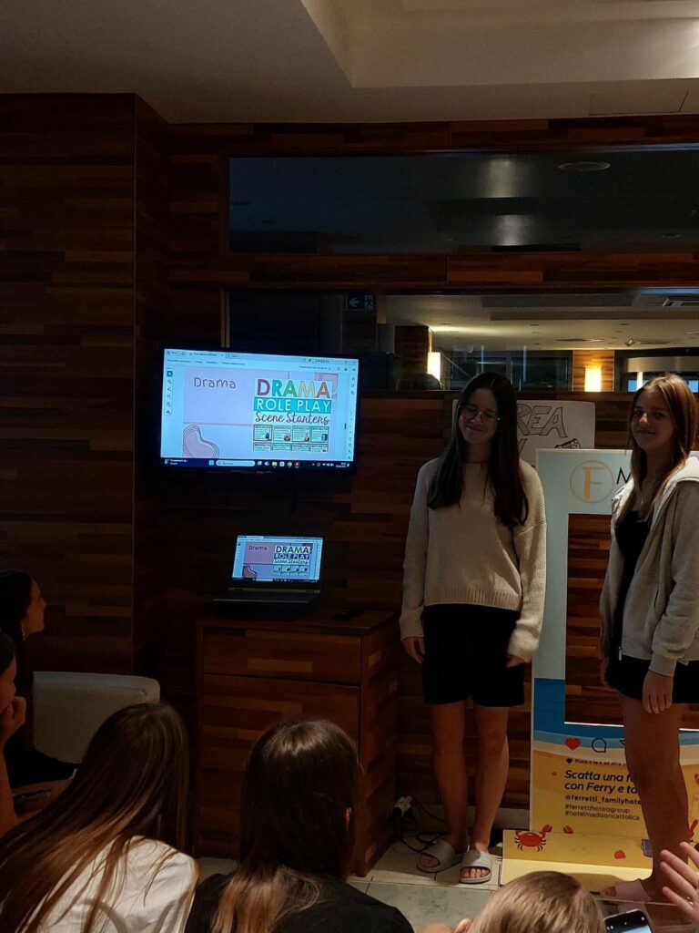 Next, we worked in groups on our projects. We improved our English skills by creating a bilingual mini-lesson in different school subjects such as Maths, Biology, Chemistry, Music, Geography. This enabled us to learn the basics of CLIL teaching techniques and helped to develop our ability to use bilingual materials. There was lots of laughter and creative fun.