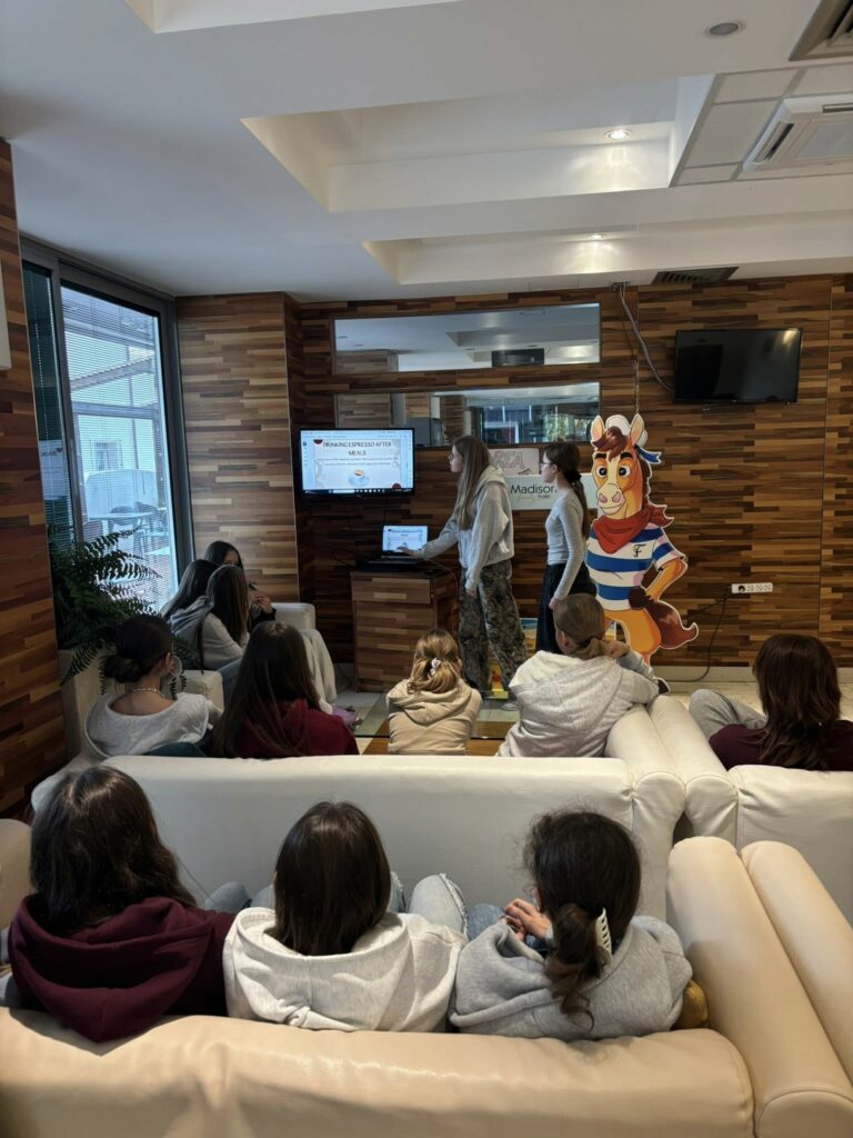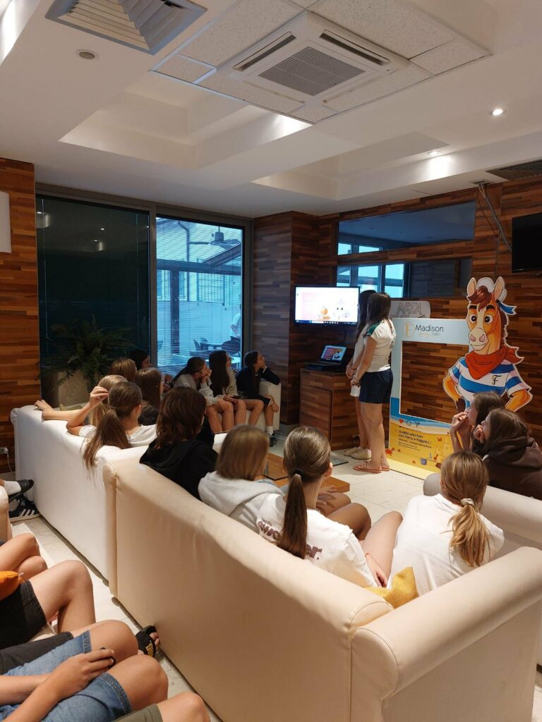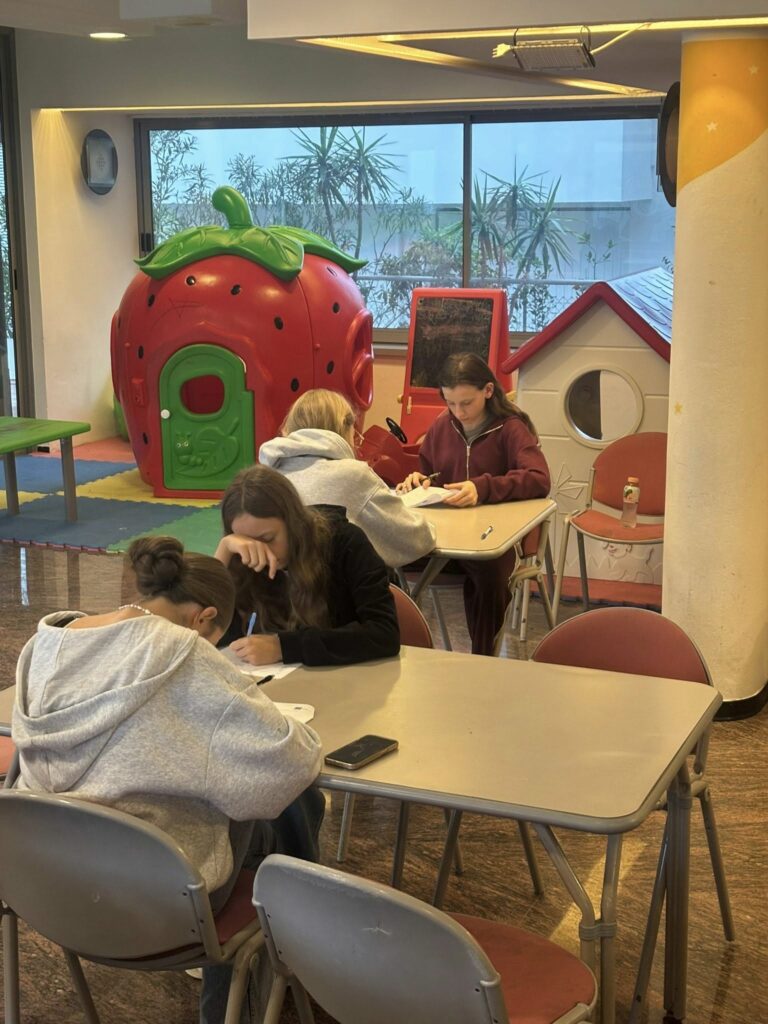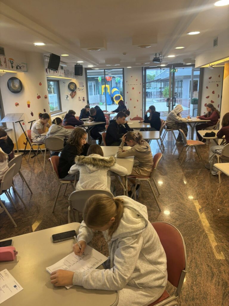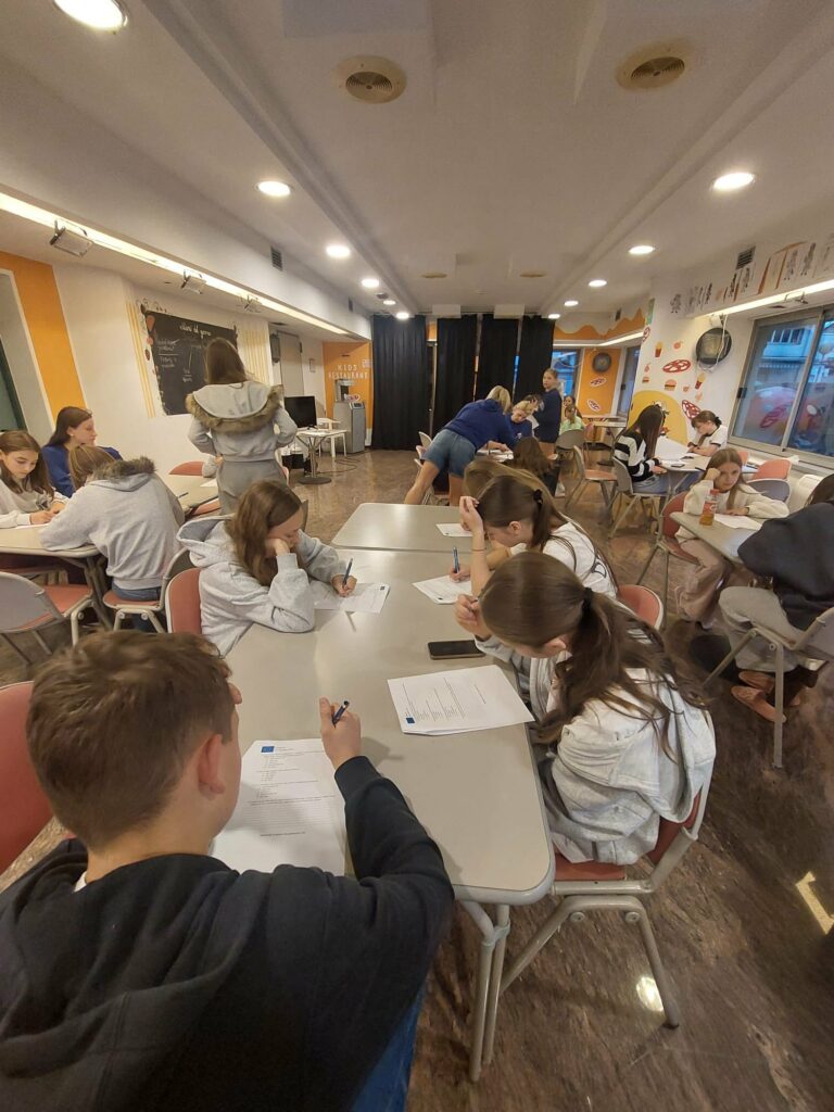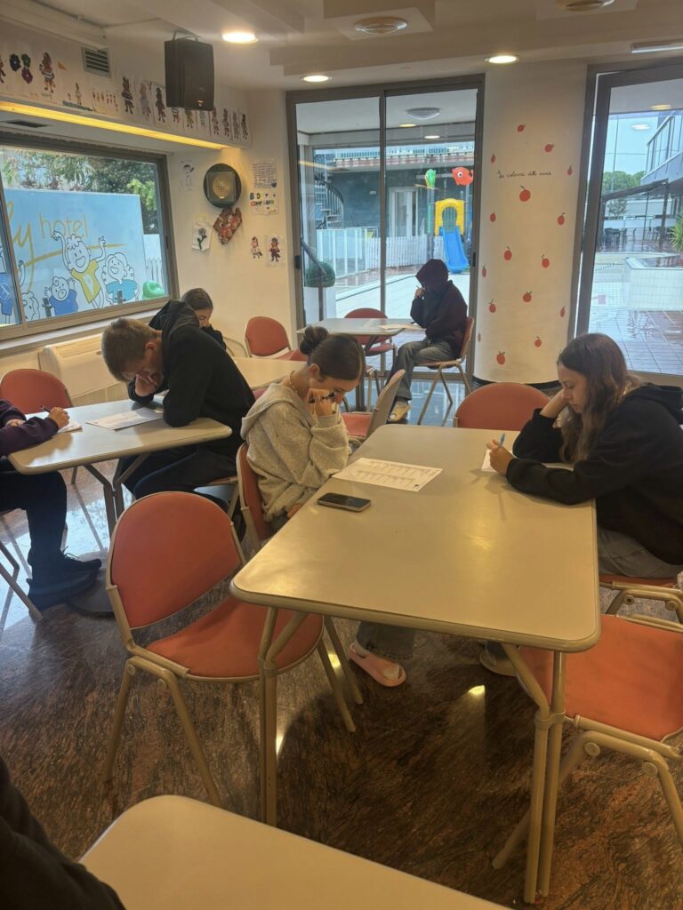 In the morning, after breakfast, we took tests to assess our level of English. It was a little bit stressful, but we did our best.