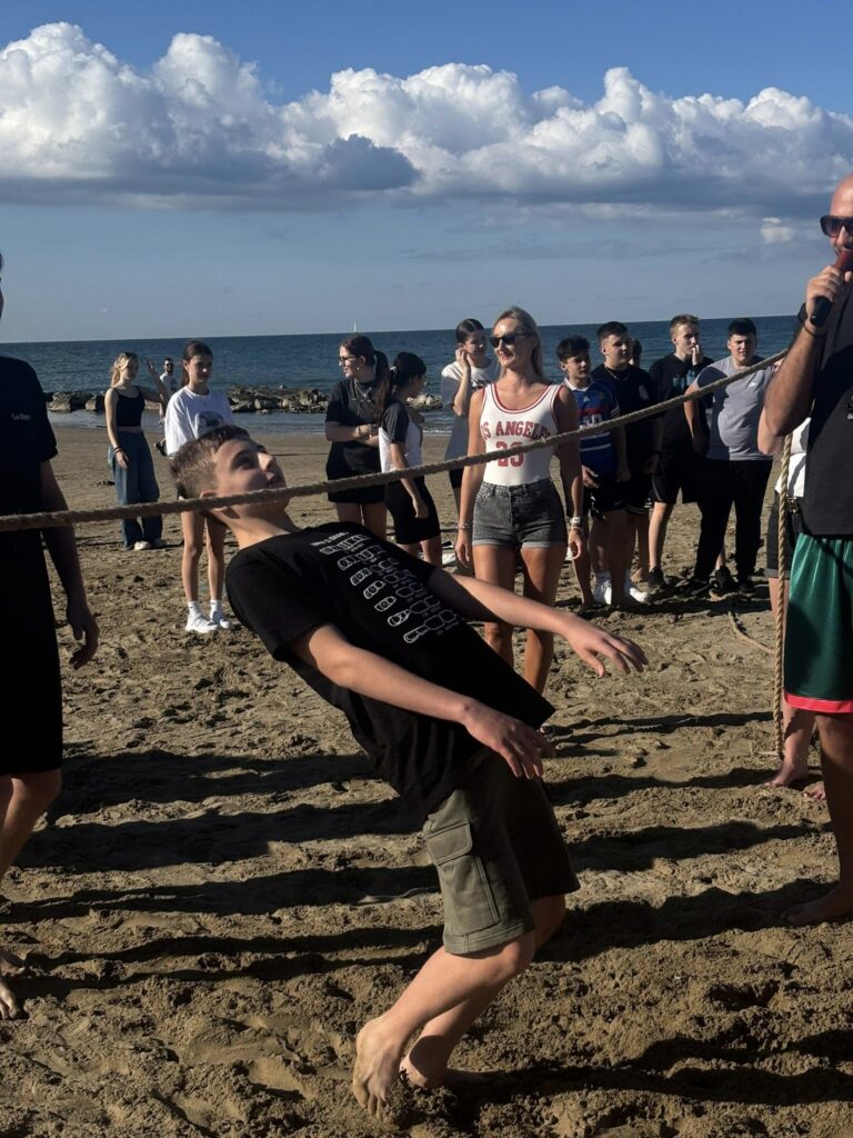 Po popołudniu wyruszylismy na plażę, aby wziąć udział w zawodach w przeciąganiu liny oraz limbo. Bawiliśmy się świetnie! Nasza zawodniczka wygrała konkurencję limbo, a drużyna dziewczyn zajęła 2. miejsce w przeciąganiu liny.