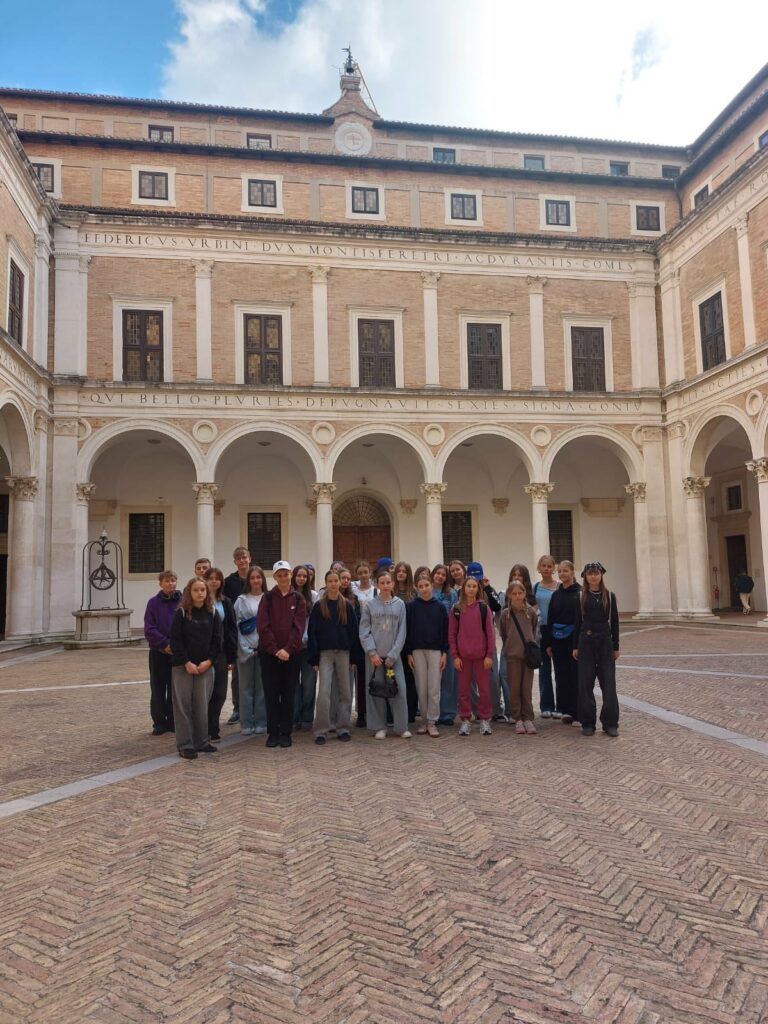 Po południu wybraliśmy się na wycieczkę do Urbino, gdzie zwiedzaliśmy National Gallery of the Marche – Ducal Palace, jeden z najważniejszych pomników wczesnego renesansu we Włoszech, który został umieszczony na liście światowego dziedzictwa UNESCO. Następnie udaliśmy się do Bazyliki Katedralnej Wniebowzięcia Najświętszej Maryi Panny, Budowle ta naprawdę wywarły na nas duże wrażenie. Dzień zakończyliśmy dyskoteką.