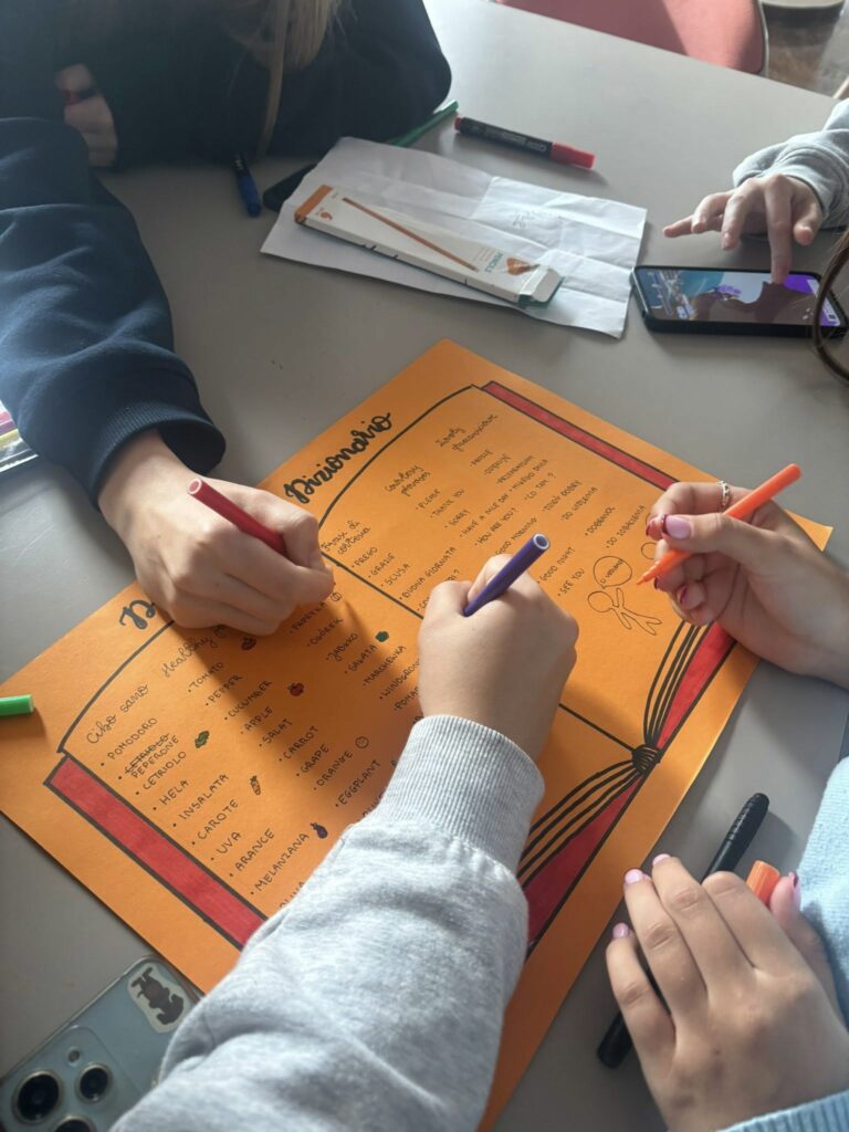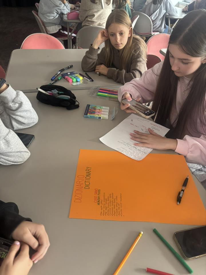 After a short rest and lunch, we created English-Italian-Polish dictionaries describing healthy food and polite phrases.