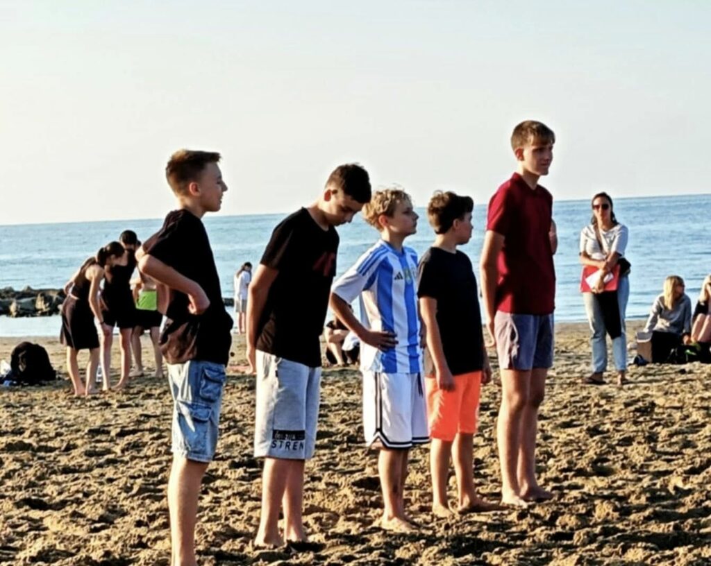 Po południu ruszyliśmy na plażę, gdzie z uczniami z innych szkół rozegraliśmy turniej piłkarski. Grali zarówno chłopcy, jak i dziewczęta, a uczennice naszej szkoły zajęły pierwsze miejsce. Emocji podczas meczy nie brakowało!
