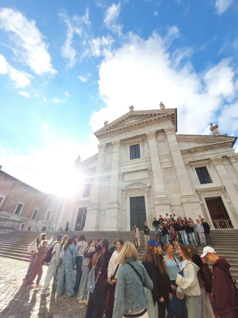 In the afternoon we went on a trip to Urbino, where we visited the National Gallery of the Marche-Ducal Palace, one of the most important Monuments of the early Renaissance in Italy, which has been included on the UNESCO World Heritage list. Afterwards, we went to the Cathedral Basilica of the Assumption of the Blessed Virgin Mary. These buildings truly impressed us. In the evening we enjoyed ourselves at the disco.