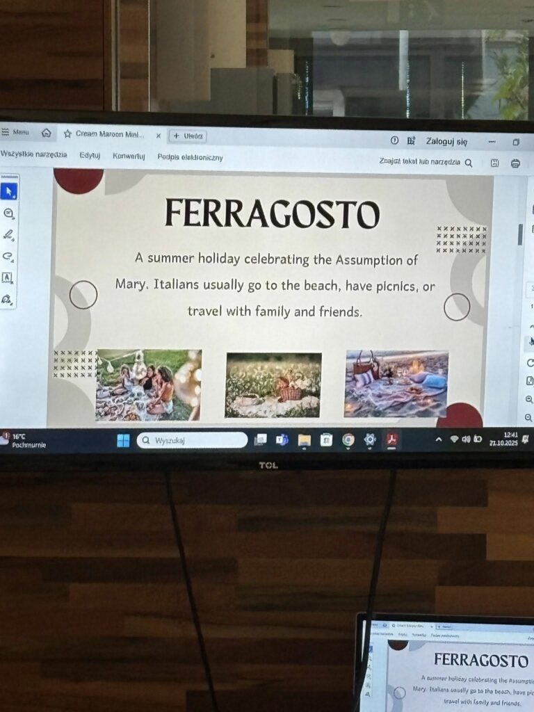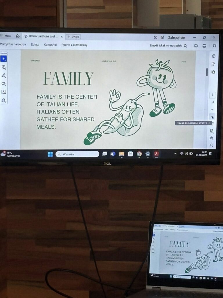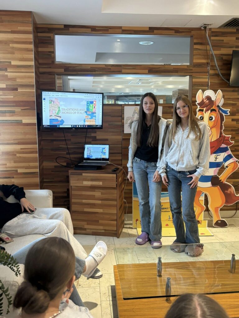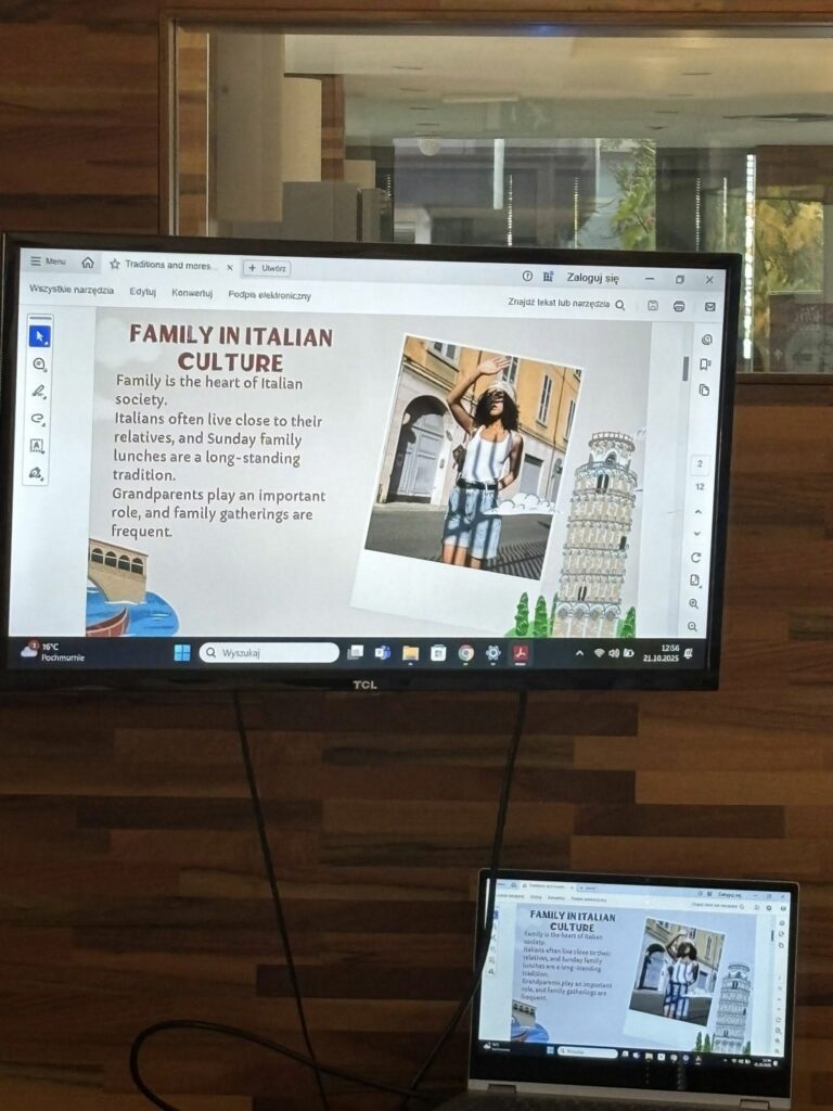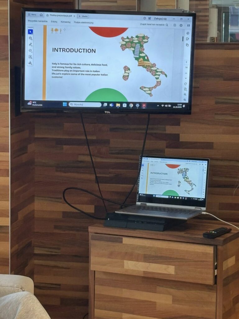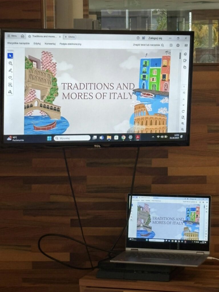 In the morning, we completed an evaluation survey for the participants of the international mobility program. Then we gave presentations about Italian traditions and customs. As a continuation of our project, we held a debate titled “Why it’s worth being open to diversity.” Working on this task enabled us to learn about Italian culture and fostered attitudes of tolerance and openness.