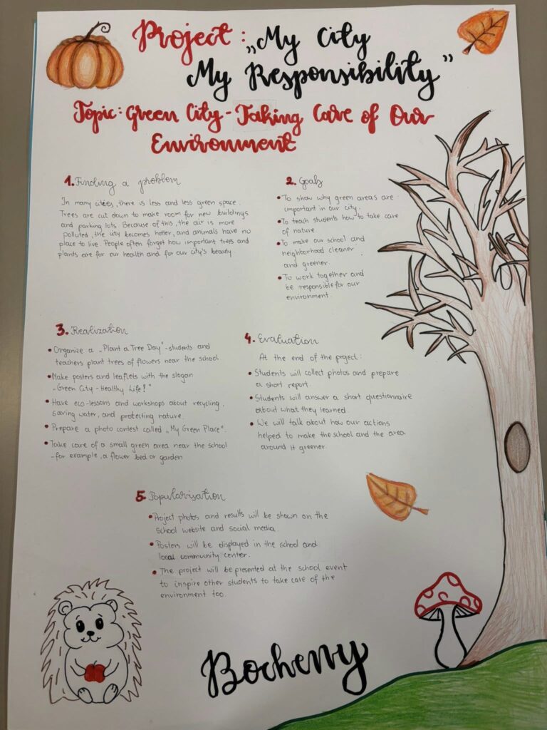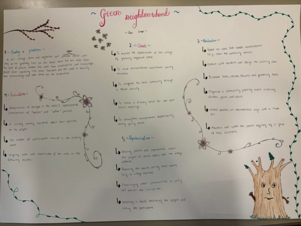 After returning, we worked on creating a plan for a social project. The students developed their leadership skills, learned how to plan and carry out a project.
