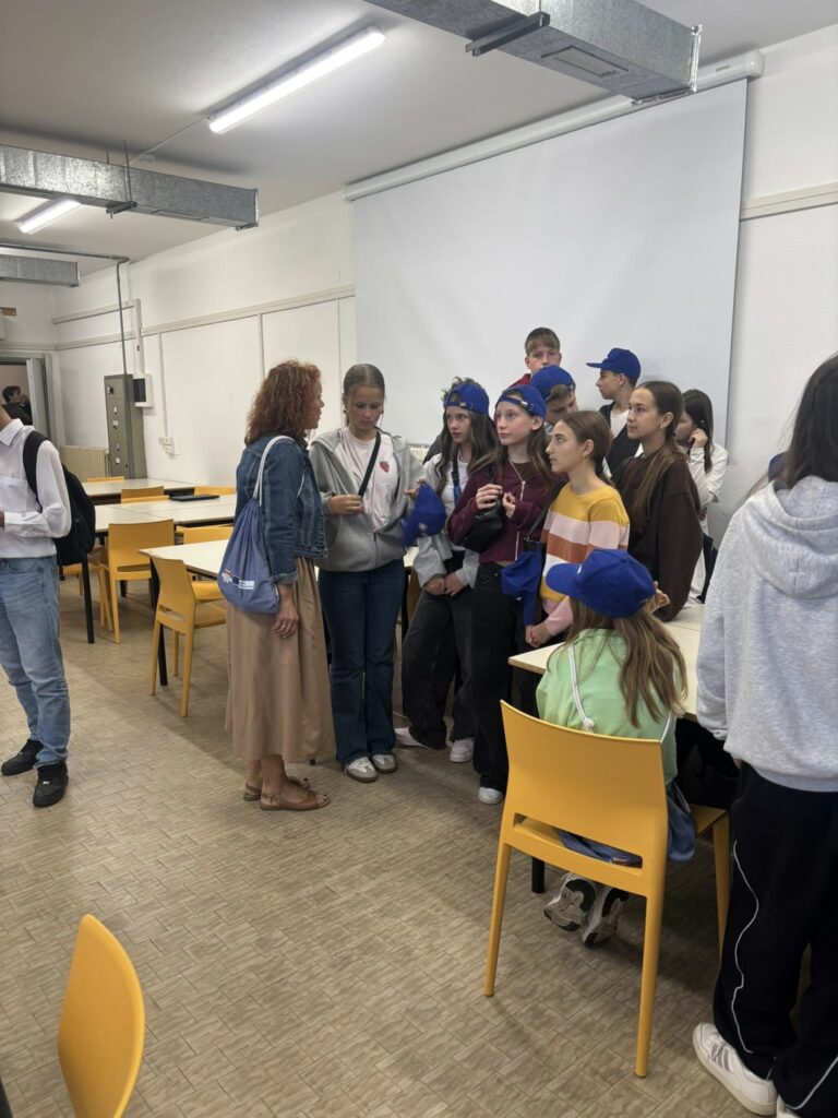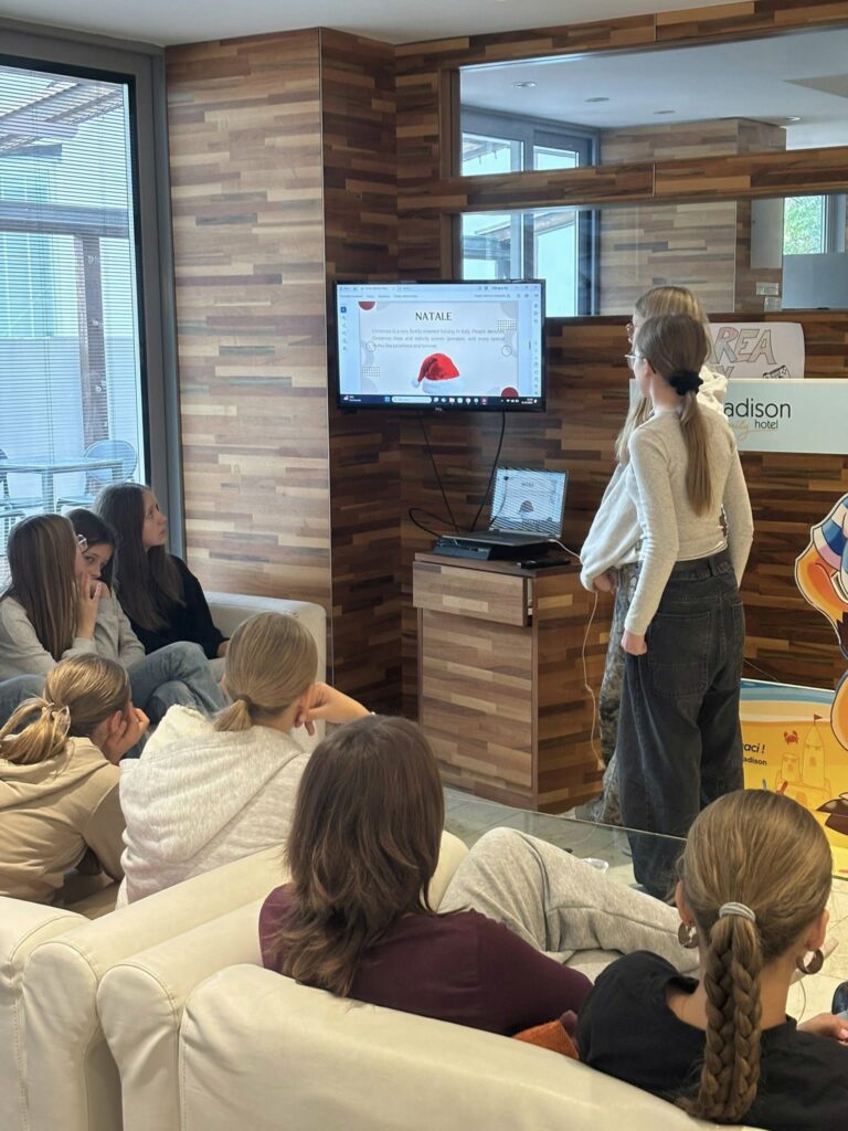 On Monday morning we went to school in San Giovanni. At the beginning of our visit, we introduced ourselves and gave a presentation on our school, region and country. Then we talked to the Italian peers in English, exchanging information about our interests and daily lives. The meeting took place in a very friendly atmosphere.