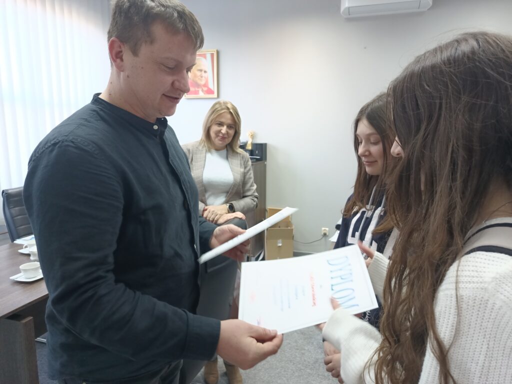 W ramach doradztwa zawodowego w naszej szkole zorganizowany został konkurs „ Moje port folio”, w którym wzięli udział uczniowie klas VII. Bezkonkurencyjne okazały się Lena Bereś oraz Nadia Olewińska z klasy VII a, zajmując I miejsce. Gratulacje!
