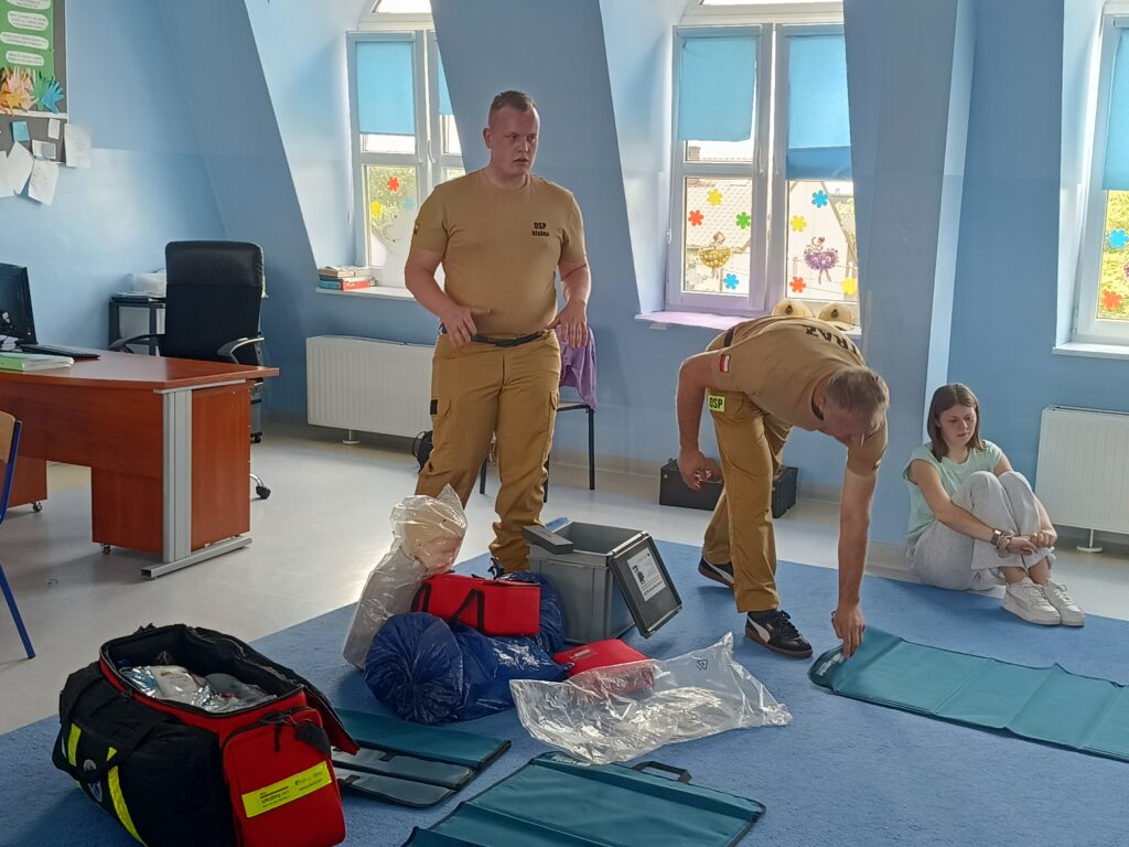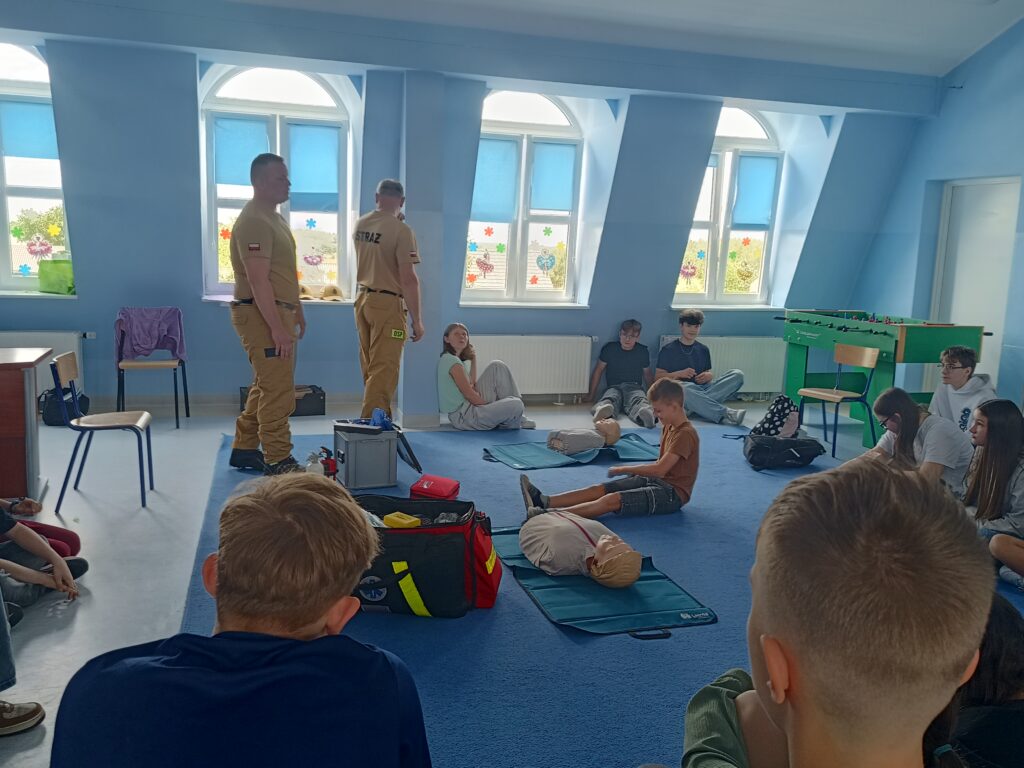 Przedstawicielom Ochotniczej Straży Pożarnej dziękujemy za przybycie do naszej szkoły i przekazanie uczniom cennej wiedzy z zakresu udzielania pierwszej pomocy oraz dostarczenie dzieciom wielu pozytywnych emocji.
