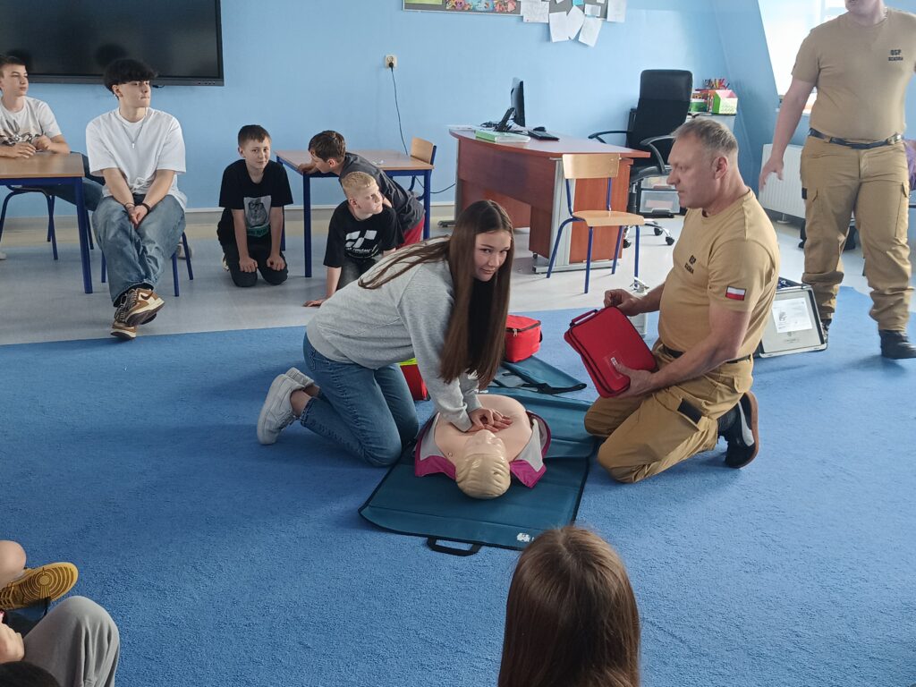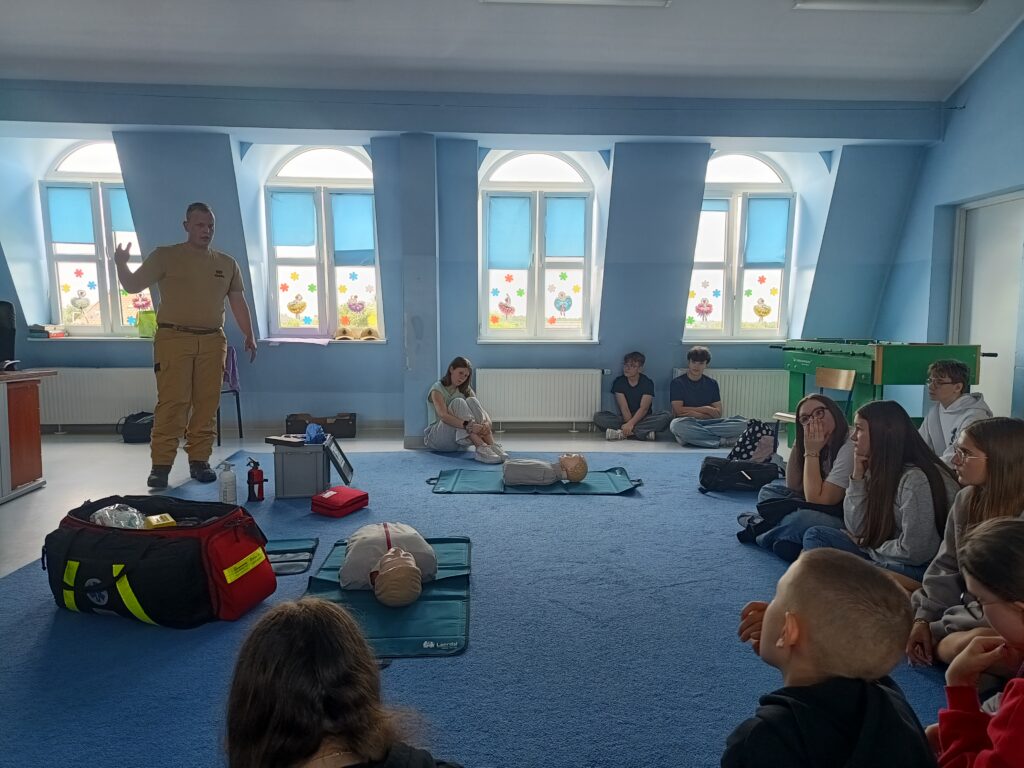Umiejętności związane z udzielaniem pierwszej pomocy są bardzo istotne. Właściwa reakcja i opanowanie w sytuacjach zagrożenia mogą decydować o życiu. Edukacja dzieci, działania profilaktyczne i kształtowanie właściwych postaw w tym zakresie, odgrywają niezwykle istotną rolę. Uczniowie naszej szkoły uczestniczyli w spotkaniu, z przedstawicielami Ochotniczej Straży Pożarnej w Rząśni. Strażacy przeszkolili uczniów w zakresie czynności związanych z udzielaniem pierwszej pomocy. Tego dnia dzieci miły również sposobność przyjrzeć się bliżej pracy strażaków.