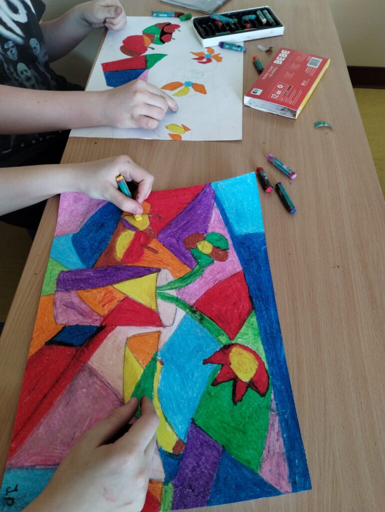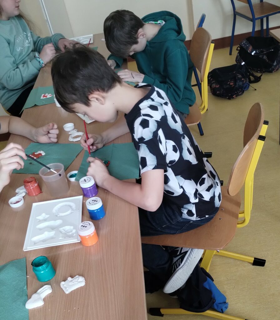 Zajęcia plastyczne, to czas rozwijania wyobraźni, wrażliwości estetycznej oraz umiejętności twórczego myślenia. Uczniowie poznają różne techniki plastyczne, takie jak rysunek, malarstwo, kolaż czy rzeźba, a także uczą się łączyć kolory, kształty i faktury. Podczas zajęć mają okazję wyrażać swoje emocje i pomysły poprzez sztukę. Zajęcia sprzyjają rozwijaniu cierpliwości, dokładności oraz współpracy w grupie.